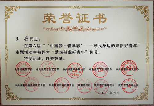 | 8月4日,由團(tuán)市委聯(lián)合市委宣傳部、市委政法委、市委網(wǎng)信辦、市委文明辦等部門共同開展的第六屆“‘中國夢·青年志’--尋找身邊的咸陽好青年”主題活動頒獎儀式,在咸陽市廣播電視臺舉行。咸陽紡織集團(tuán)有限公司趙夢桃小組榮獲“咸陽好青年集體”稱號,趙夢桃小組組長王丹榮獲“愛崗敬業(yè)好青年”稱號。